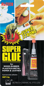 ALTECO Super Glue is an easy to use, quick cure and high strength adhesive. It is suitable for a wide variety of household usage. These include bonding of metal, plastic, rubber, wood, etc., material with porous surfaces, on vertical surfaces and other general applications.